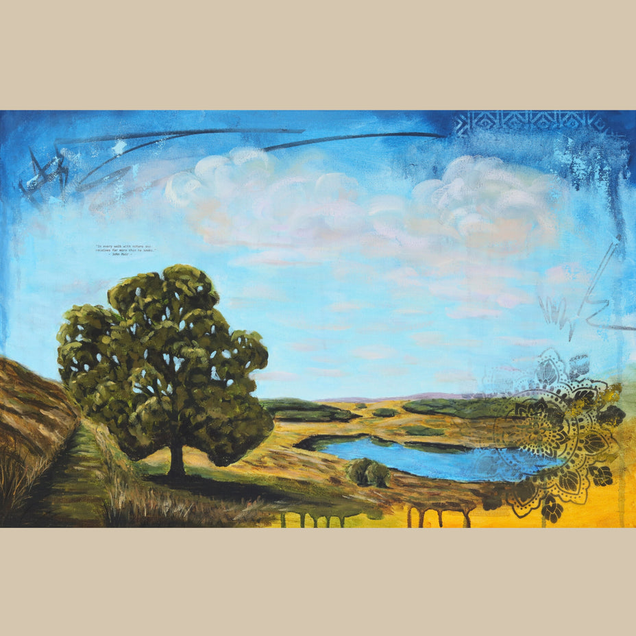 My studio is where those memories and adventures take form — layered textures, expressive colour, and moments of stillness that invite you to step closer and reconnect with the wild.