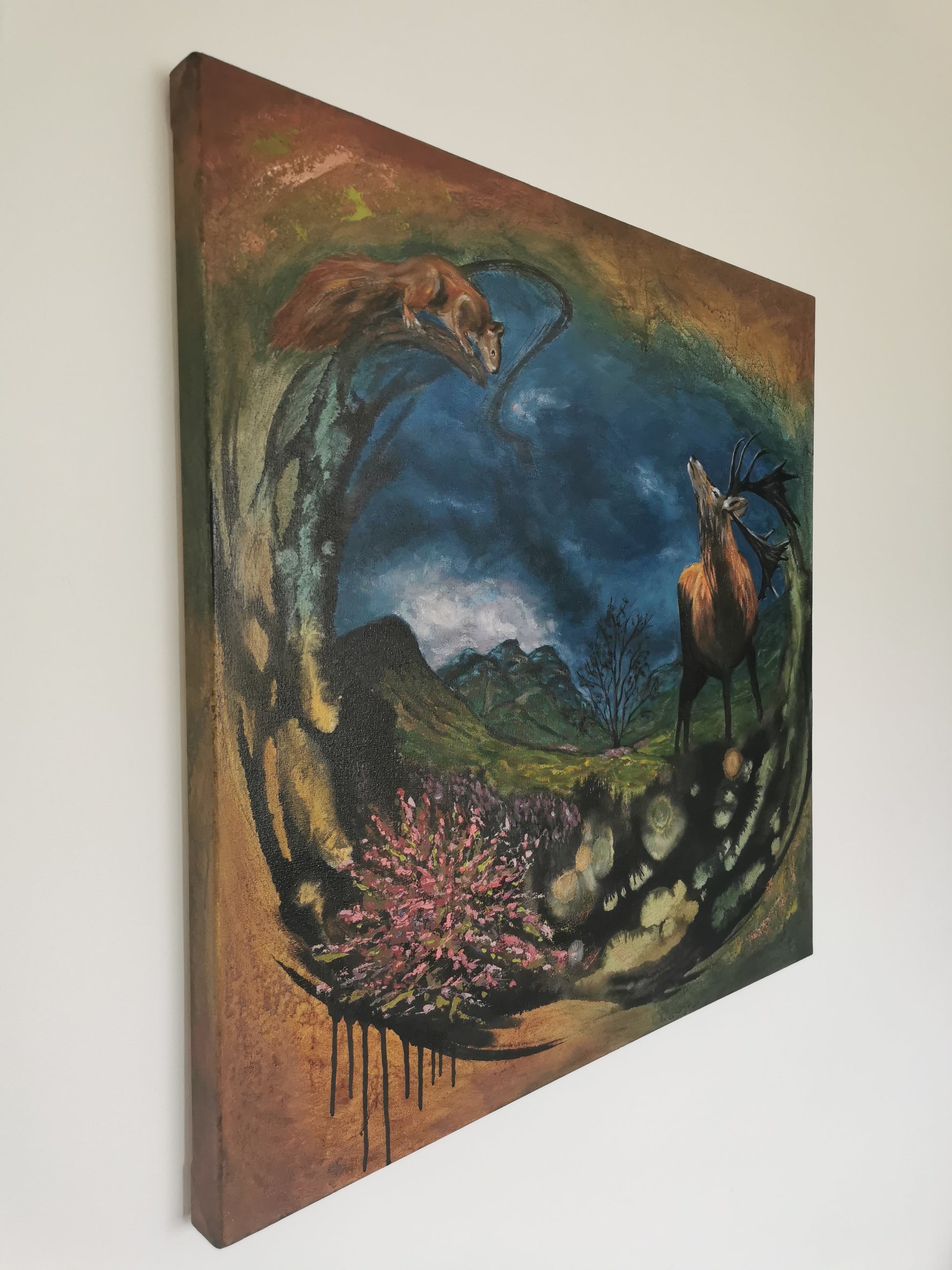 This dreamy painting is your adventure into the Scottish wilderness. The beautiful valley, the moody skies and the iconic Scottish animals overlooking the dramatic landscape. Can you refuse such an experience?